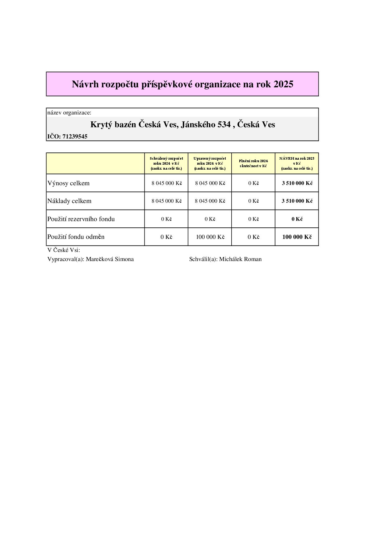 Provozovatel: Krytý bazén Česká Ves, příspěvková orgnizace
